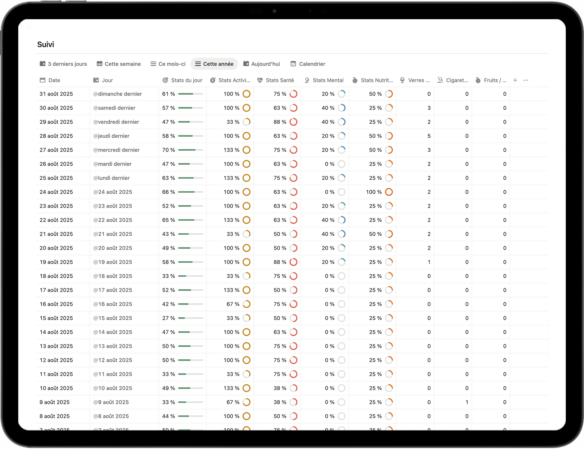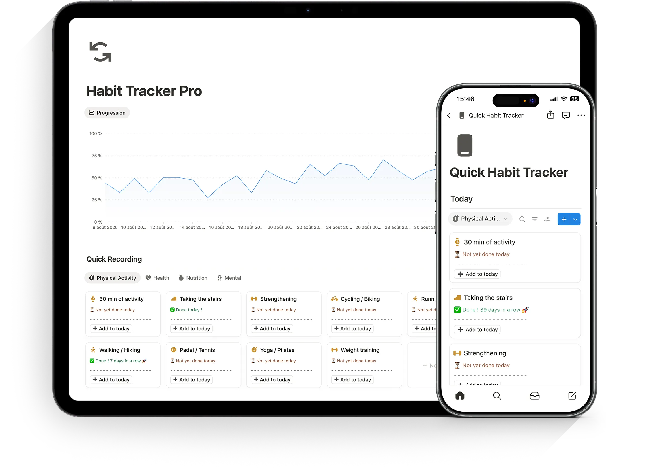 The best way to track your habits on Notion. 100% automated template : record with one click, and it takes care of the rest.